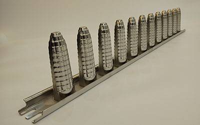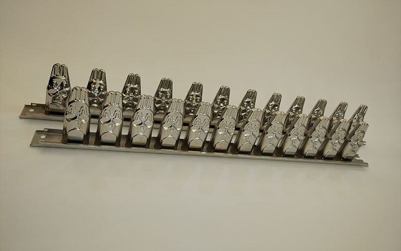 Le moule à crème glacée en acier inoxydable comporte 12 cavités et est spécialement conçu pour une utilisation avec les équipements de production Vitaline, afin de permettre une production entièrement automatique et en série de glaces sur bâtonnets.